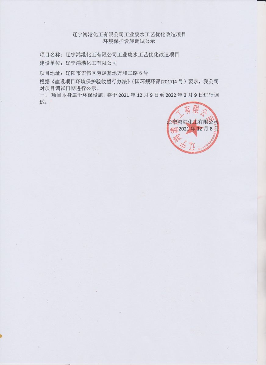 完美体育网页登陆入口工业废水工艺优化改造项目环境保护设施调试公示