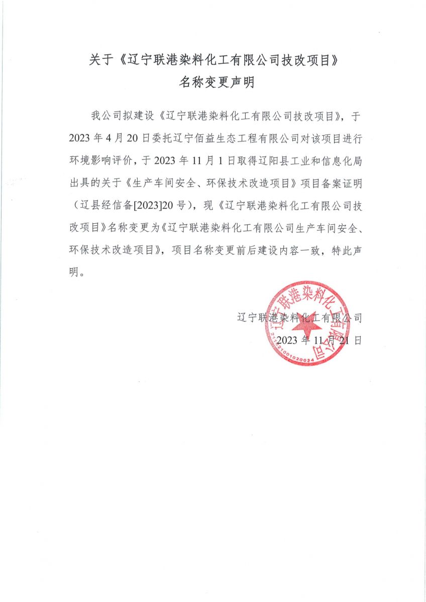 关于《辽宁联港染料化工有限公司技改项目》名称变更声明.pdf